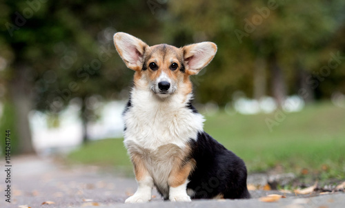 cute welsh corgi on a walk