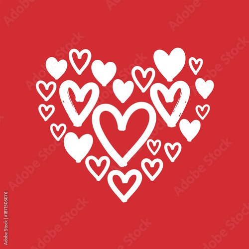 cute white heart doodle icon made of small hearts on red background vector illustration