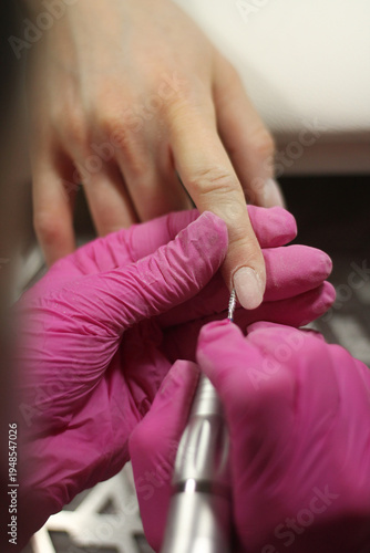 Cuticle and nail preparation with electric nail drill during professional manicure