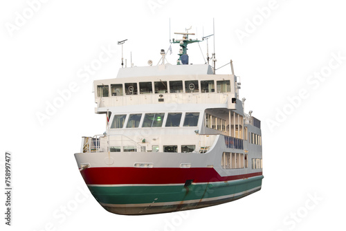 Cutout of an isolated passenger ferry boat with the transparent png background