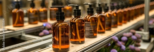 Cutting edge factory displaying a modern and efficient cosmetic bottling production line