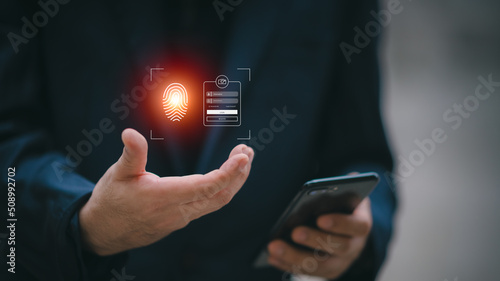 cyber security concepts, login, user fingerprint Secure and encrypted identity,secure access to user personal information , secure internet and network access, cyber security..