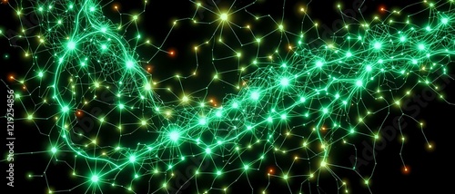 city landscape, night, scene, light, cybernetic, web, art, style, glowing, edge, interconnected, node, urban, ambience, tech, industry, optical, marketing, decorative, element, green, and, orange, intricate, detail, dynamic, pattern