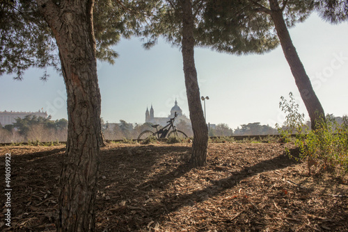 madrid, bicycle, tree, nature, landscape, forest, sky, park, tree, wood, old, green, mountain, trunk, grass, root, tree branch, plant, blue