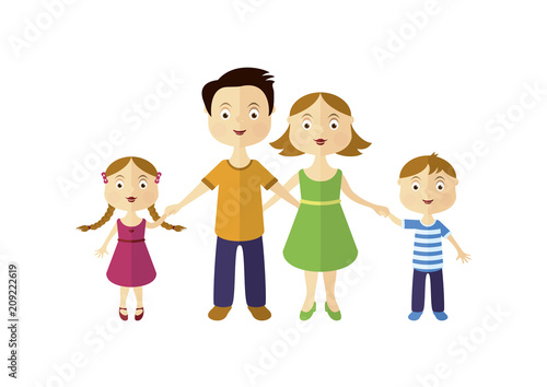 Daddy with mum and kids vector. Family vector illustration. Parents and children cartoon character