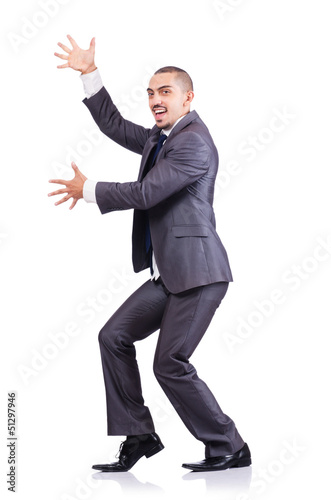 Dancing businessman isolated on white