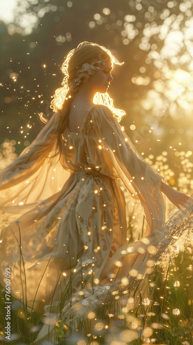 dancer, robe, emotion, peace, meadow, render, light, effect, figure, glow, language, garment, body, silhouette, beauty, motion, vibrant, freedom, outfit, posture, passion, flare, movement, hours