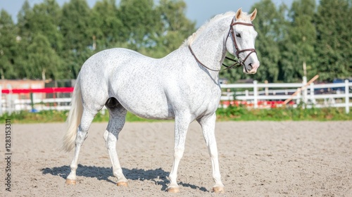 Dapple grey horse in equestrian arena