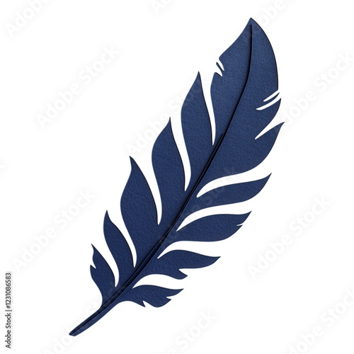 Dark blue feather silhouette on transparent background, ideal for digital designs, crafts, and creative projects.