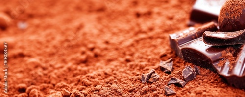 Dark Chocolate Bars and Cocoa Powder Close-Up - Textured Background of Rich Cacao on a Rustic Surface