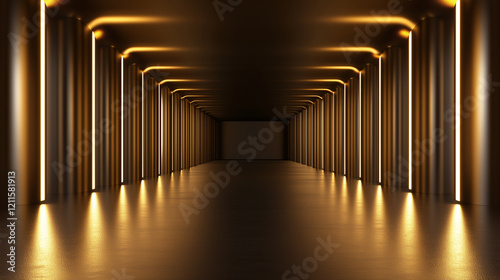 Dark Corridor with Golden Light Strips