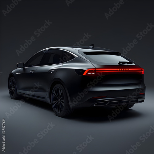 electric car, sedan, car, automobile, vehicle, transportation, modern, futuristic, sleek, dark, black, grey, backview, studio shot, isolated, nobody, automotive, design, technology, innovation, environmentally friendly, green, sustainable, contemporary, urban, city, luxury, performance, electric power, battery, charging, wheel, light, rear lamp, bumper, trunk, side mirror, window, road, drive, travel, commute