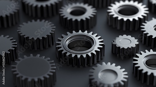 gear, cog, machine, technology, teamwork, dark, metal, grey, industrial, engineering, mechanism, background, abstract, texture, pattern, design, interlocking, precision, industry, manufacturing, part, component, wheel, movement, motion, rotating, complex, system, machinery, dense, closeup, detailed, smooth, shiny, chrome, metallic, illustration, graphic