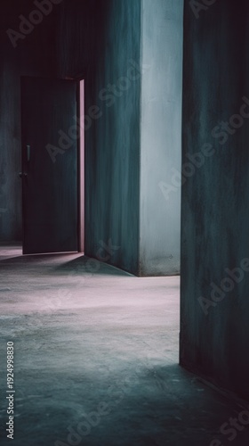 hallway, corridor, minimal, dark, abstract, light, shadow, mystery, door, entrance, architecture, interior, opening, concrete, wall, floor, modern, empty, moody, geometric, perspective, future, space, concept, vertical, background, copy space, graphic, design, building, minimalism, passage, unknown, pathway, hope, opportunity, choice, possibility, decision, innovation, imagination, surreal, dramatic, art, contemporary, texture, urban, abandoned, industrial
