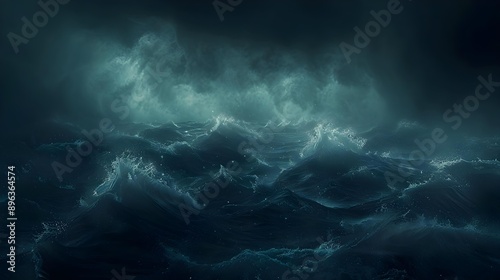 Dark ocean storm with lightning and waves at night