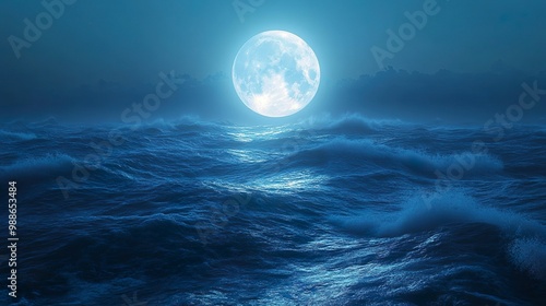 moon, sky, night, sea, water, blue, ocean, space, cloud, moonlight, full, dark, light, cloud, nature, planet, star, landscape, fantasy, astronomy, horizon, black, bright, lake