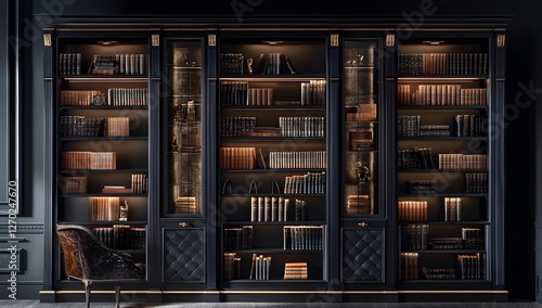 bookcase, bookshelf, library, study, home, interior, furniture, luxury, dark, elegant, design, antique, classic, decor, room, black, wood, gold, glasses, shelf, lighting, modern, vintage, collection, book, reading, home decor, office, luxury home, living room, antique furniture, leather, chair, display, interior design, ornate, cabinet, display case, gallery, exhibit