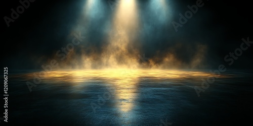 spotlight, stage, dark, smoke, light, background, texture, scene, effect, abstract, design, illustration, mysterious, dramatic, moody, atmospheric, ambient, ray, beam, glow, haze, fog, shadow, floor, ground, surface, blue, yellow, orange, gold, night, empty, space, studio, vibrant, colours, art, graphic, digital, image, photo