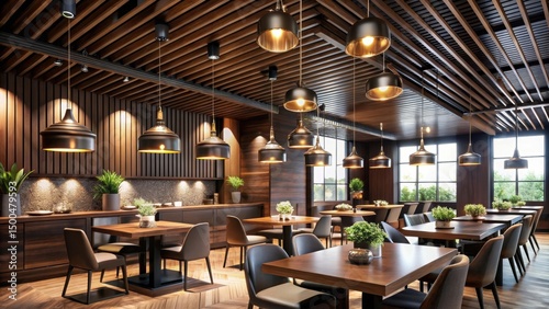 Dark Wooden Ceiling with Pendant Lights