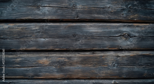 Dark wooden planks with rustic texture, showcasing natural grain and knots, perfect for backgrounds or design elements