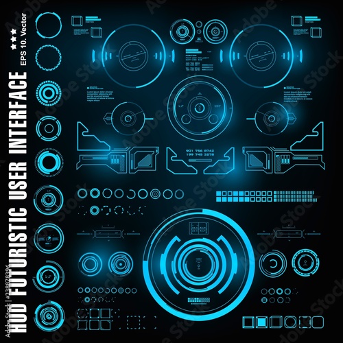 Dashboard display virtual reality technology screen. HUD futuristic blue user interface.