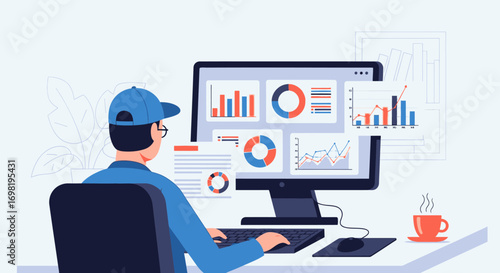 Data Analysis Worker with Computer Charts Statistics and Modern Design