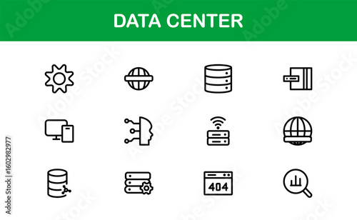 Data Center Line Icon Collection – Unique, creative, and high-quality vector illustrations representing IT networks, storage systems, and computing devices