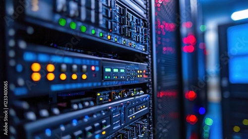 Data Center Server Rack Technology Close Up Modern Network Infrastructure