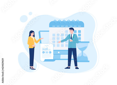 Data paper with calendar and time concept flat illustration