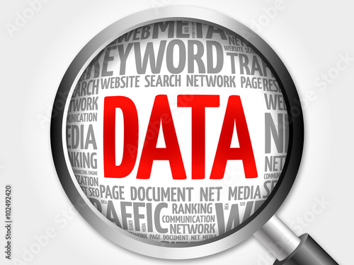 DATA word cloud with magnifying glass, business concept