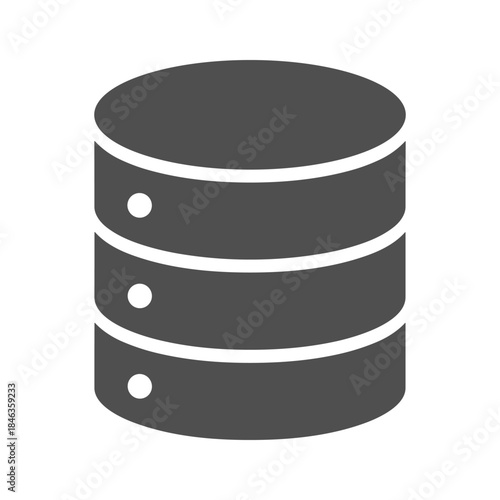 database, icon, datum, storage, server, technology, information, digital, abstract, symbol, graphic, illustration, simple, minimal, dark, grey, white, cylinder, stack, layer, template, vector