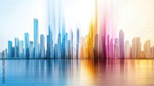 city, skyline, urban, architecture, building, modern, design, technology, illumination, landscape, horizon, panoramic, vibrant, colourful, futuristic, artistic, abstract, water, scene, aesthetic, enhancement, digital, visual, imaginative, creativity, perspective, graphic, innovation, display, light, detail, environment, city landscape, structure, beautiful, contemporary, urbanity