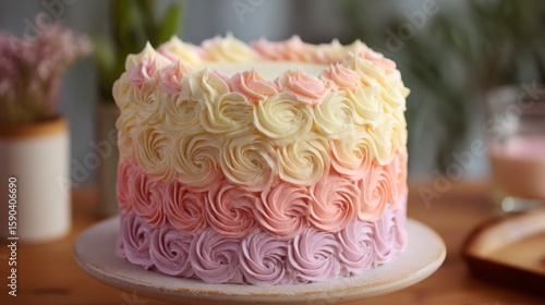 cake, dessert, sweet, bakery, icing, frosting, pastry, food, delicious, celebration, birthday, party, design, colours, texture, cream, sugar, layer, isolated, white, pastel, pink, yellow, purple, floral, pattern, closeup, studio, homemade, epicure, cooking, confectionery, baked, tasty, decoration, art, style, elegant, beautiful, wedding, event, cookery, creative, background, fresh, treat