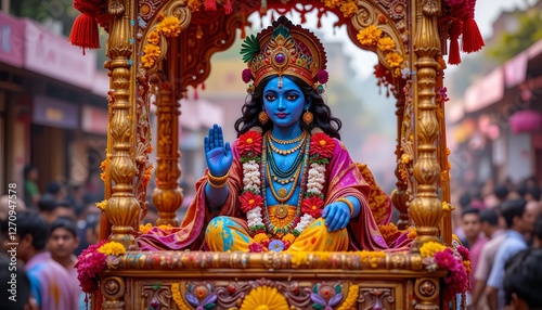 holi, palanquin, krishna, idol, vibrant, colours, powder, traditional, celebration, festival, spring, happy, india, hindu, indian, hinduism, culture, ritual, heritage, religion, festive, colourful, seasonal, joy, artistic, bright, tradition, decorative, divine, worship, cultural, spirituality, decoration, religious, travel, temple