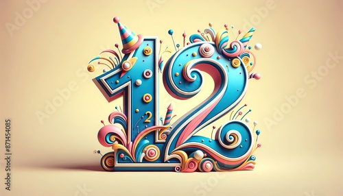 Decorative number 12 with intricate floral and ornamental design, creative and artistic representation for birthdays or anniversaries