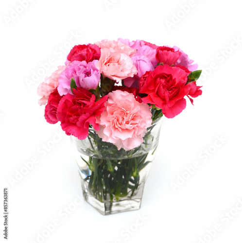 carnation, floral, flower, nature, birthday, gift, card, red, valentine, pink, colourful, romance, bouquet, tree branch, decorative, stem, collection, elegance, assortment, closeup, freshness, isolated white, present, three, up