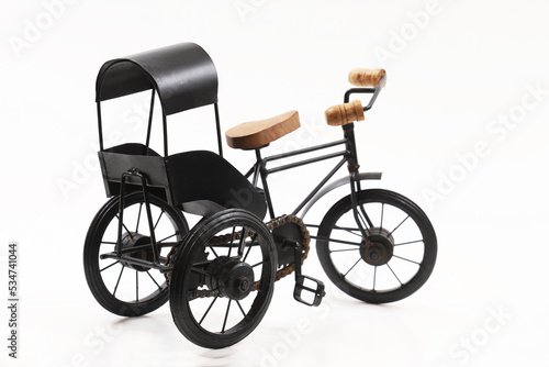 Decorative souvenir bike. Antique tricycle-carriage. Shallow depth of field