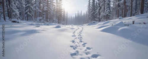 Deep bear tracks in pristine snow, serene winter scene , grizzly, scene, peaceful
