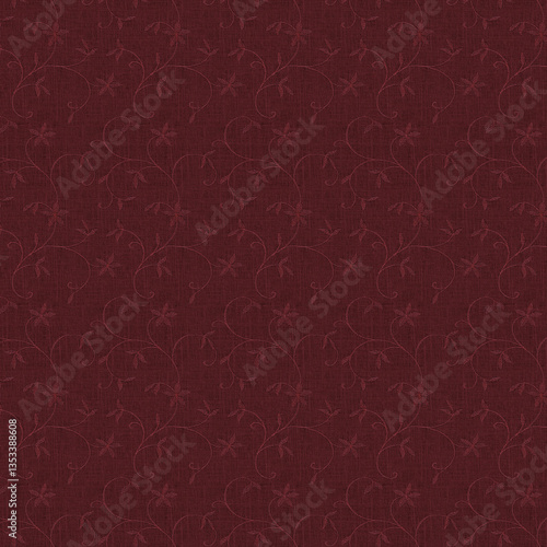 Deep burgundy textured ornamental background with subtle floral swirl patterns. Perfect for luxury designs, wallpapers, textiles, packaging, invitations, and elegant classic decorative projects.