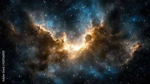 deep space nebula glowing with vibrant hues of blue and gold