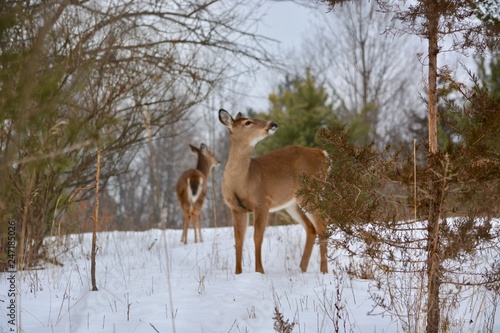 cervid, animal, wildlife, mammal, nature, snow, winter, wild, doe, buck, forest, white, grass, antelope, brown, animal, antler, white tail, fur, park, tail, young, hunting, red