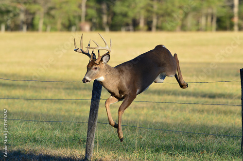 Deer jumping fence in Cades Cove Smoky Mountain National Park, Tennessee