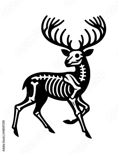 cervid, skeleton, vector, icon, logotype, black, white, background, animal, bone, graphic, design, art, illustration, emblem, minimal, modern, creative, stylised, outline, avatar, brand, identity, template, clip art, simple, decor, print, signs, wildlife, nature, forest