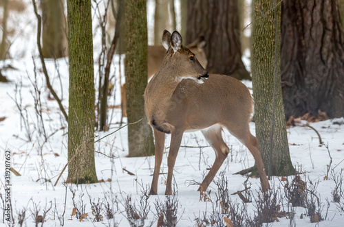 Deer. The white-tailed deer also known as the whitetail or Virginia deer in winter on snow. White taild deer is the wildlife symbol of Wisconsin and game animal of Oklahoma.