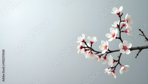 almond blossom, spring blossom, white flower, floral, blooming, bloom, blossom, tree branch, twig, delicate, fresh, season, springtime, minimal, simplicity, elegant, nature, botanical, botany, flora, plant, growth, growing, small, fragile, natural, background, clean, soft, calm, pastel, gentle, light, bright, copy space, blank space, studio shot, still life, macro, closeup, indoor, single, isolated