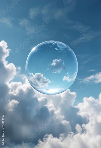 Delicate blue orb drifting through a cloudy sky with soft focus effect, orb, peaceful, cloud