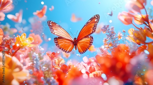 Delicate Butterfly Wings Unfurling in Vibrant Floral Garden