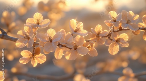 Delicate cherry blossoms illuminated by soft sunlight