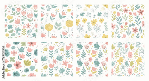 Delicate floral designs for fabrics wallpaper and decorative paper with pastel palette