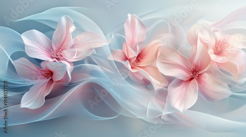 flower, pastel, pink, light, delicate, soft, flowing, fabric, sheer, blue, light blue, subtile, smooth, texture, background, design, pattern, elegant, floral, pretty, beauty, romantic, art, image, still, life, colours, modern, artistic, impression, high-coloured, lightness, arrangement, composition, illustration, digital, abstract, nature, gentle, airy, impressionistic, realistic